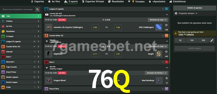 A aposta 76Q oferece aos jogadores a experiência mais conveniente de apostas em eSports!